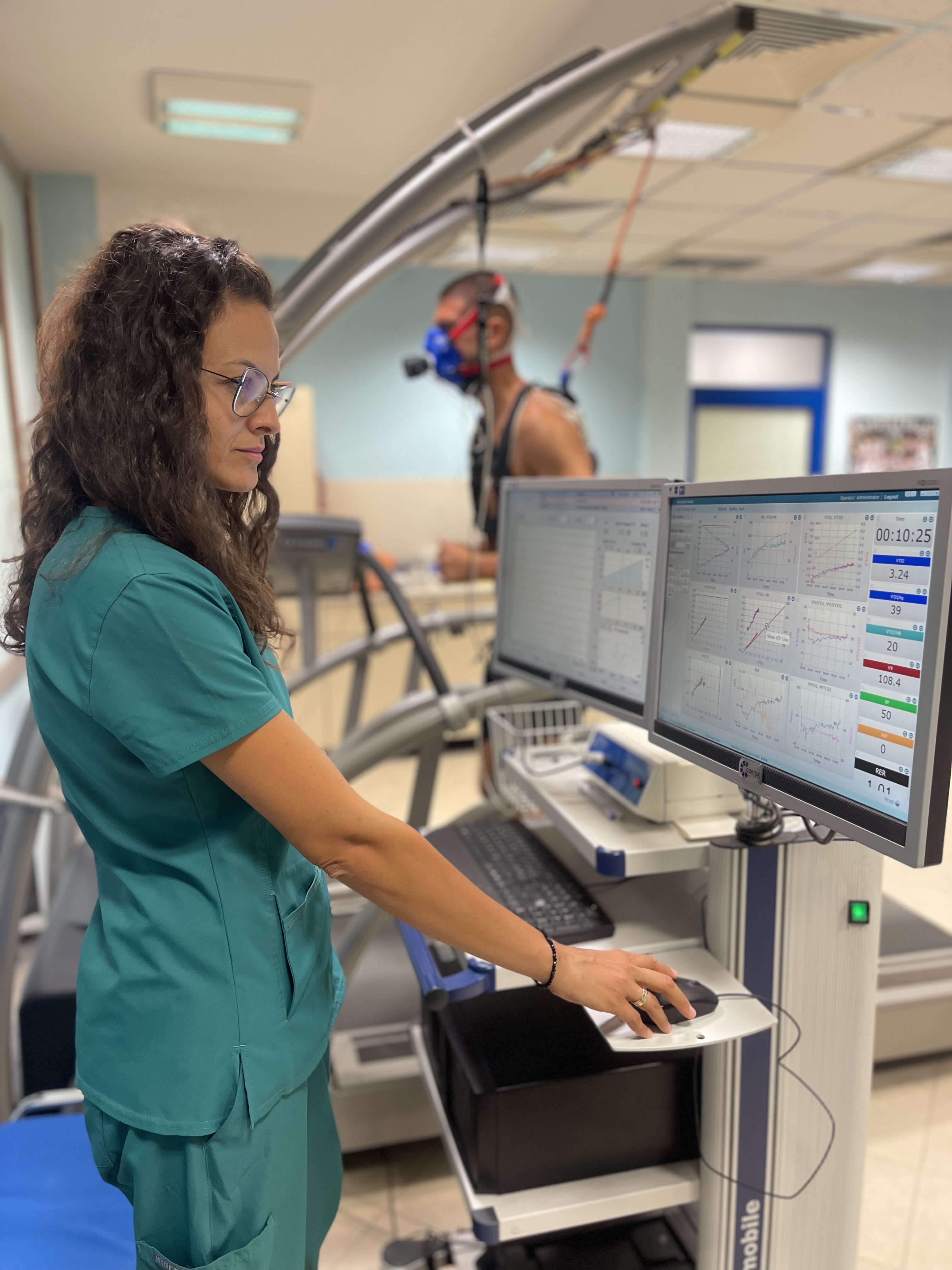 В „Еуровита“ елитните спортисти преминават през цялостна специализирана медицинска оценка – от лабораторен анализ, подробна ортопедична и кардиологична консултация до високоспециализиран кардиопулмонален стрес тест с натоварване (CPET). Този тест е златният стандарт за анализ на функционалните възможности и оптимизация на тренировъчните програми при спортисти от най-високо ниво.