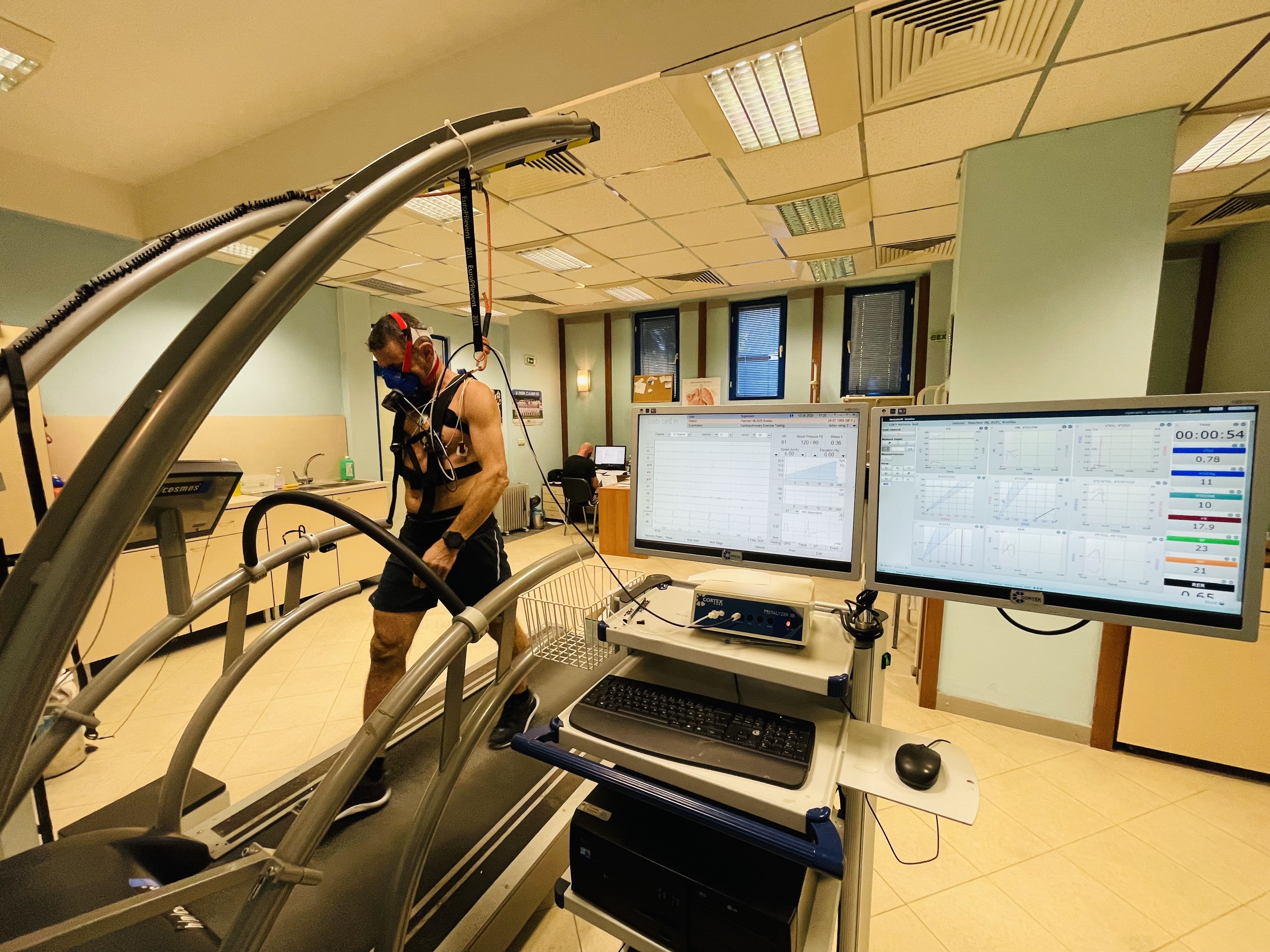 Ключов елемент в подготовката му е кардио-пулмоналният стрес тест с натоварване (СРЕТ). Чрез измерване на кислородната консумация (VO₂), вентилацията, сърдечната честота и метаболитните прагове (вентилаторен анаеробен праг и респираторна точка на компенсация), тестът осигурява обективен профил на издръжливостта. Това позволява: